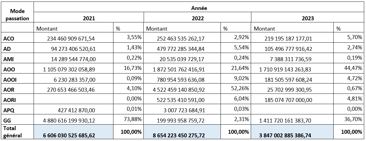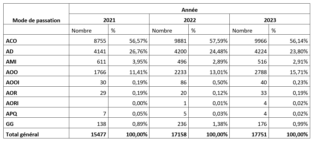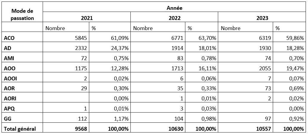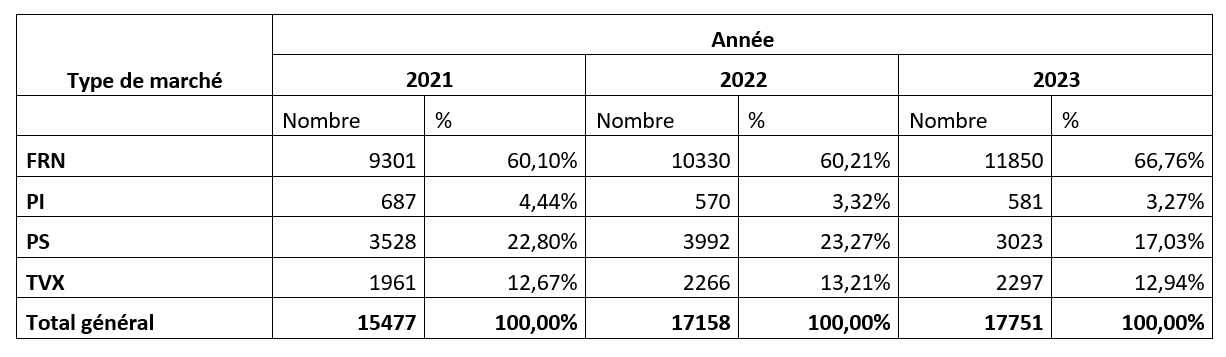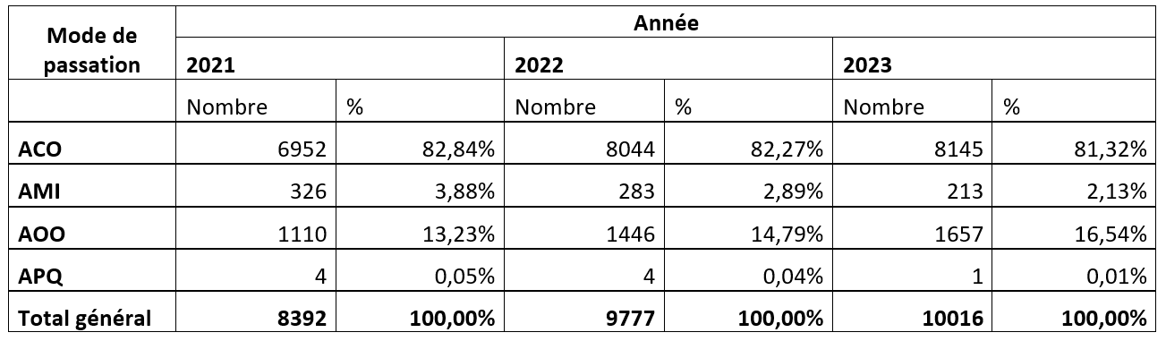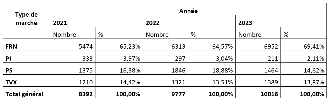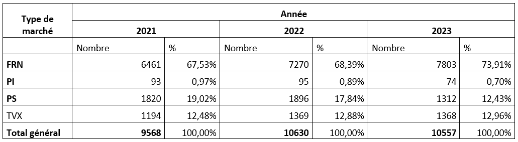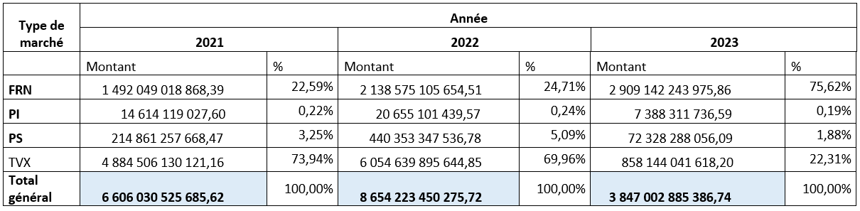 Statistique des données sur les marchés publics des trois dernières années 2021 – 2022 - 2023