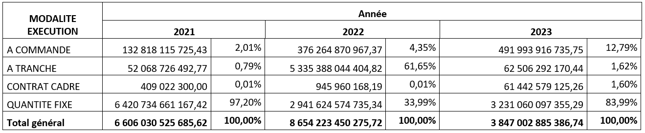 5- Statistiques concernant la Modalité d’Exécution :