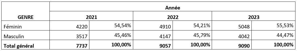 6- Statistiques concernant l’Approche genre